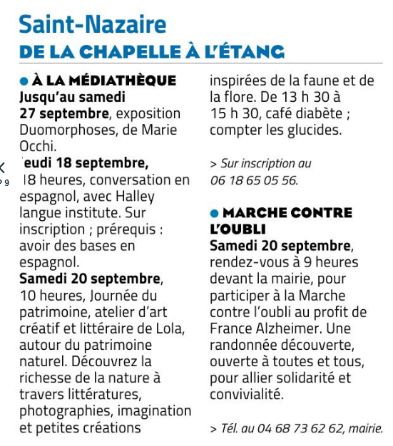 Nos activités programmées